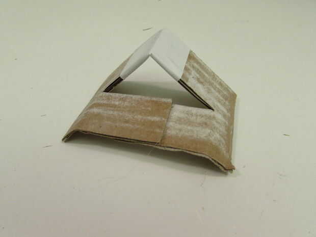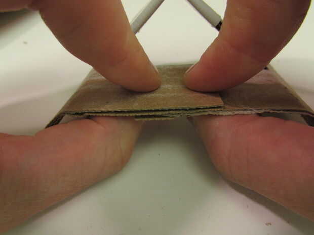 Mantener las dos piernas dobladas de su marco de cartón juntos como la primera foto de arriba. Ajustar hasta obtener un ángulo en la estructura de a que te gusta. Si lo desea, puede marcar este punto con un rotulador o lápiz trazando en el extremo de una pierna golpea el otro.