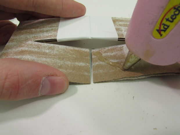 Aplicar algunas de su práctico pegamento caliente, poner las piernas detrás juntos y suavemente apriete les juntos hasta que el pegamento seque. Su armazón debe parecerse a la cuarta foto de este conjunto cuando esté listo.