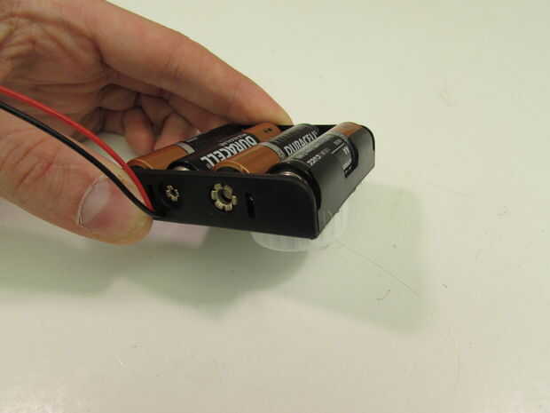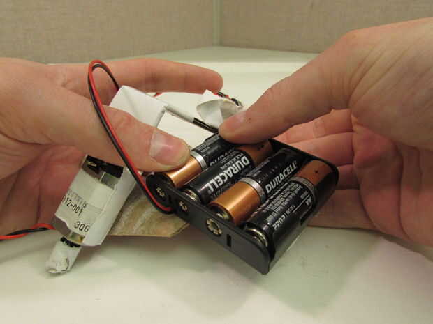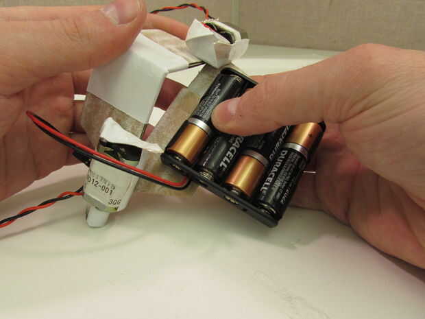 Figura hacia fuera donde usted quiere poner su batería manteniendo en su robot. Una vez que estés satisfecho, agrega pegamento y pulse en.