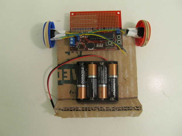 Usted también tendrá que asegurarse de que su chasis es lo suficientemente amplio como para adaptarse a su microcontrolador y sus motores caja de cambios. Entonces usted simplemente pega en la parte superior de la cartulina, junto con el paquete de baterías y microcontorller.