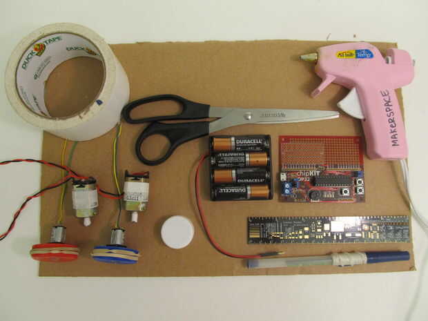 • Un par de motores. (Ya sea directo en coche con las ruedas de cinta de conducto o caja de engranajes con ruedas de tapa de botella, que los cuales puedes encontrar en mi Instructable sobre motores y ruedas para Robots baratos).