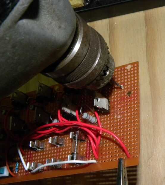 Para la muestra de la Junta de tira, que utiliza líneas verdes para las conexiones de cables, líneas rojas para el revestimiento de cobre tiras, círculos rojos para los separadores, y rojo los cuadrados para los cortes de la pista. Para soldar el conector ATX que tiene cables 18AWG, los agujeros de montaje deban ampliarse por perforación. SW1 y el conector de alimentación DC se atornillarán al caso.