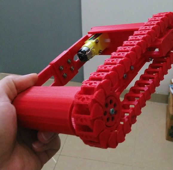 Uno de los puntos principales de este proyecto fue desarrollar en de orugas completamente impresas 3D, donde al final el mecanismo requiere unos cuantos tornillos, papeles de de par de tuercas y las Naciones Unidas.