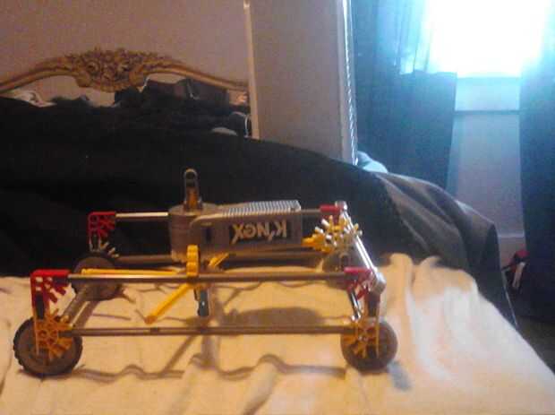 cortacésped con control remoto. La plataforma del cortacésped es una 22 pulgadas Weedeater de WalMart. Los motores de la silla de ruedas son méritos. Los motores funcionar a 12 voltios y se recarga la batería por un alternador de GM. La emisora e