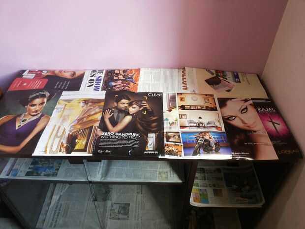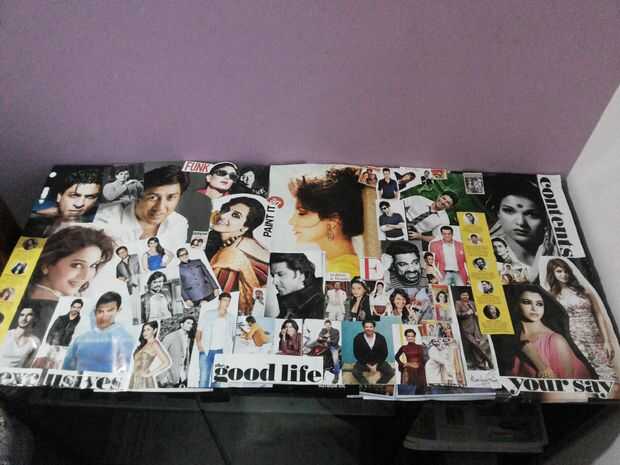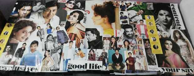 Navegar a través de la entertainment revistas y recortar los rostros de Bollywood.