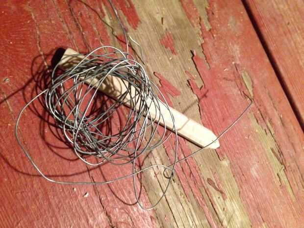 Así que caminaba por mi vertiente en mi camino al perro de agua. Y lo espío la mitad enterrada en tierra en la esquina, pero esta masa enredada para arriba del alambre. Ahora tengo cable! Pero no consigo ir a la descarga. Maldito perro.