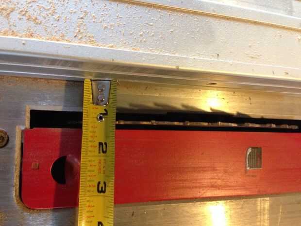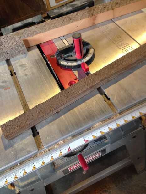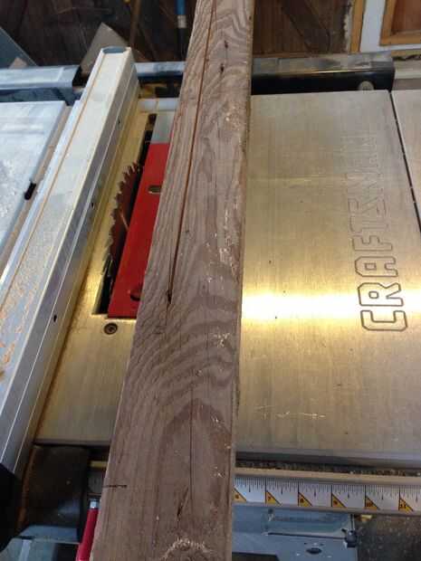 Establecer mi sierra de mesa para un corte de una pulgada y corte hacia abajo de 3 pies de la Junta, luego hicieron una cruz cortada. (Debería haber sólo cortar toda la longitud de la Junta entonces chop lo aserrado a la longitud, pero no estaba segura de lo que sería mi siguiente paso aún. Después decidí, mi siguiente paso fue cortar el resto de la sección de 1 pulgada.)