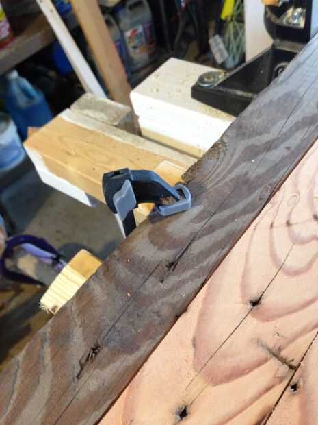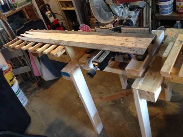 Por lo que he apoyado a mi primera rodaja para un corte de 12 pulgadas, sujeta a mi mesa, alineadas las tres piezas a perfection-ish y corte! Estos serán mis mejores piezas. Luego hice lo mismo para los inferiores.