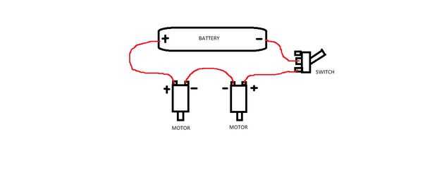 Conecte los cables, motores, la batería y el interruptor como se muestra en el diagrama anterior.
