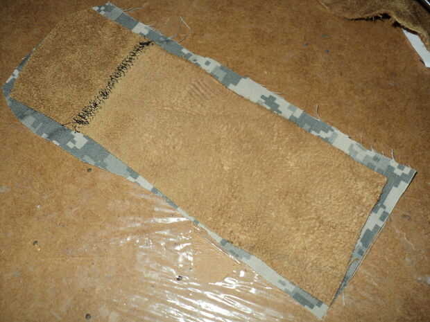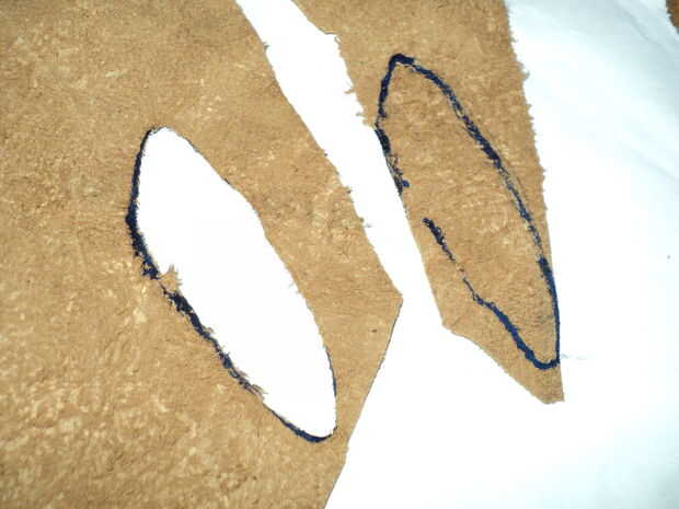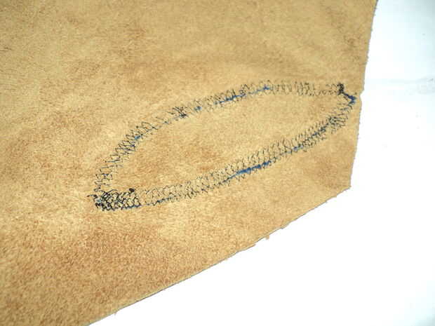 También puede cortar pequeños pedazos de cuero que se unen en una costura para hacer una pieza más grande. Tuve que hacerlo mismo con mi pedazo de lazo de la correa.
