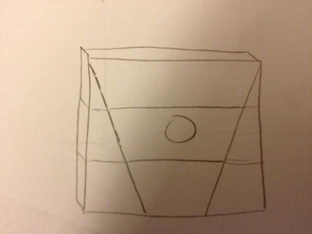 Coloque el triángulo sobre la Plaza pegada antes y utilizar para dibujar las líneas de corte para la Plaza. Luego cortar el exceso de la Plaza y luego perforar un agujero de 1/2 pulgada en el centro de lo que quedaba.