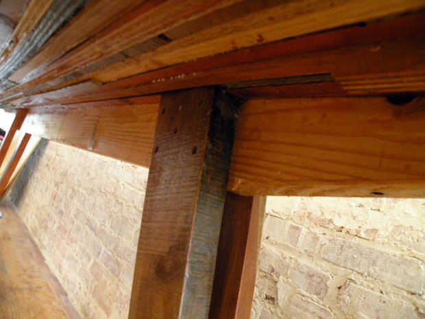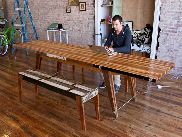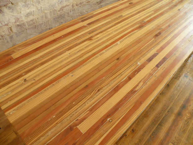 Hay muchos métodos para laminar madera, este proyecto se centra en un método de abajo y sucio para los que no poseen un lote de abrazaderas para tubos y otro hardware resistente para lucha con madera salvaje. Es aproximadamente diez pies de largo por que treinta pulgadas de ancho, sentado cerca de treinta pulgadas de la tierra. Si puede salvar la madera, otros materiales no son demasiado caros: cinco roscado de barras, de unos cuatro dólares cada uno; tuercas, arandelas y tornillos; un galón o menos de cola para madera; papel de lija; y poliuretano. Dicho todo esto, era menos de cien dólares.