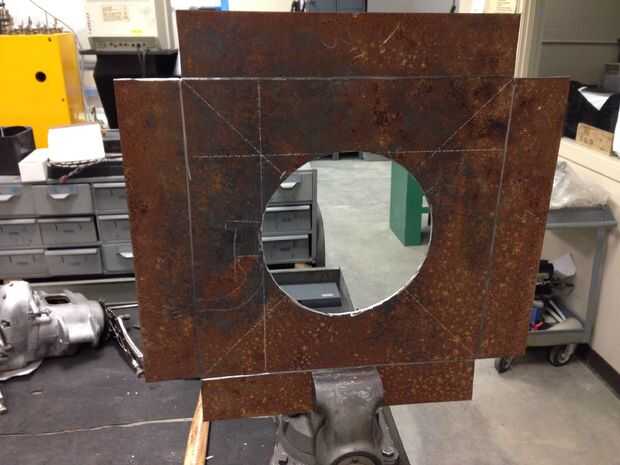 Después de que el medio era cortar, corté las esquinas. Luego llegó el momento para marcar las líneas de plegado. Tomé la pieza a la vicepresidencia primera, pero porque no anoto suficiente tuve que poner el freno. Accidentalmente he intentado lo desprendió la manera opuesta de lo que quería, así que cuando trataba de doblar el primer pliegue lo contrario lo doblado. El resto de los pliegues fue bastante bien, así que era el momento de soldar encima.