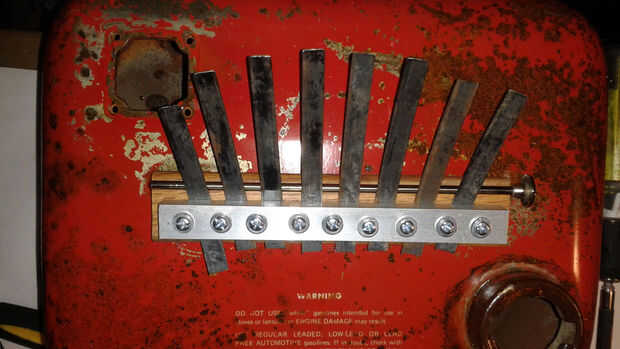 Corté los dientes en pedazos sobre 4-5" con una amoladora angular con una abrazadera en c a constante del resorte. Tiraron un 1" muela en mi taladro y redondeado y alisó un extremo de cada diente.