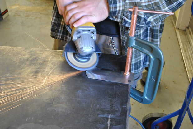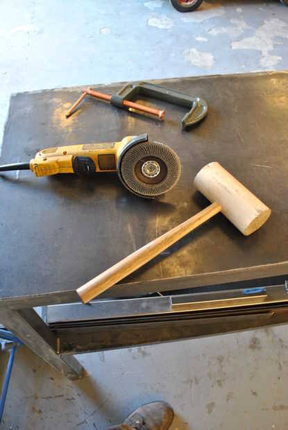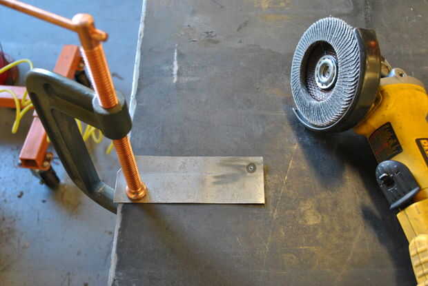Simplemente Sujete el metal a cualquier mesa de trabajo que quiera, pero asegúrese de no apretar en exceso de lo contrario será probablemente marque demasiado la superficie. Aquí yo también aplanaría la pieza, si es necesario, con un martillo soft-ish. Esto facilitará las cosas como el proyecto va en. Una vez hecho eso, eso es todo lo que se necesita para comenzar a volver a allanar. Encienda el aparato e ir en él! Asegúrese de tener en cuenta como esta el material es pulido es puesto a acumular calor. No tenga esto en cuenta hasta que accidentalmente a tierra a través de un punto en el metal. Más allá de eso, sólo voltea, re abrazadera y hacer lo segundo. La hoja recién terminada está lista para estar en forma!