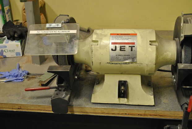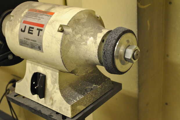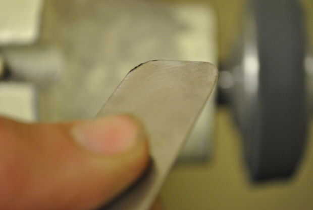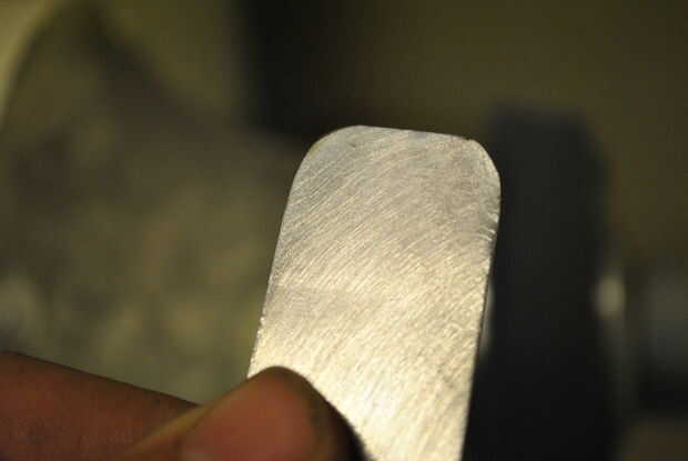 El proceso de rectificado sin embargo, deja rebabas en los bordes del metal. Si usted tiene la intención de dar a éstos como regalos, o incluso si no lo hace, querrá volver a estar libre de cualquier borde filoso para asegurarse de que no pueden coger en cualquier tejido o corte accidentalmente el usuario. Este proceso es atendido por la rueda de desbarbado! Montado en una esmeriladora de banco, esta rueda porosa pule ligeramente el metal como quitar bien los bordes que están presentan en la superficie. (Un ejemplo de esto es también en la foto.)