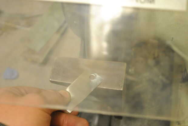 Con este paso, sea extremadamente cuidadoso. Las piezas de metal que está trabajando ahora son realmente pequeñas y los dedos están cerca de las ruedas que giran. Dicho, esto no verse tentado a usar guantes. Si lo hace y los dedos hacen contacto, existe la posibilidad de enguantado de usted mismo que va a ser mucho peor.