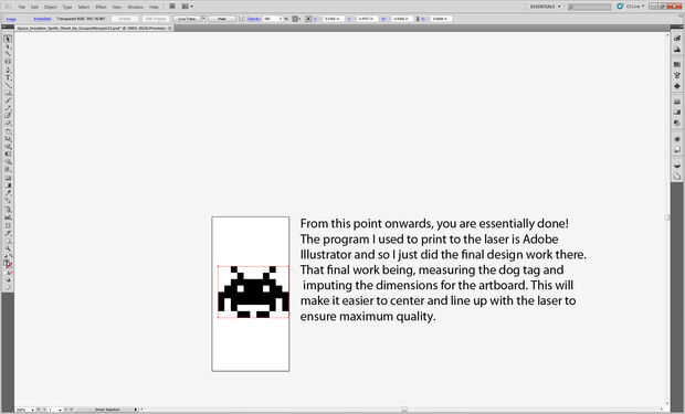 Desde este punto son esencialmente hecho! El programa que usé para imprimir en el laser es Adobe Illustrator y lo acabo de hacer el trabajo de diseño final. Ese trabajo final que, midiendo la etiqueta de perro e imputación de las dimensiones de la mesa de trabajo. Esto hará más fácil al centro y alinee con el láser para garantizar la máxima calidad.