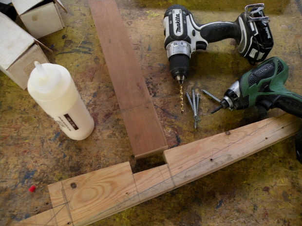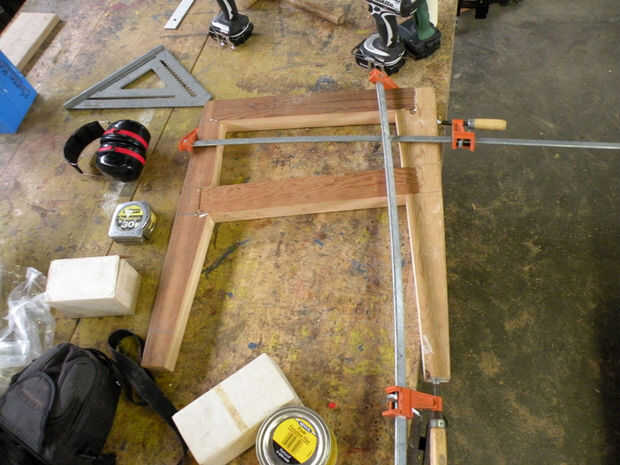 Para montar los marcos, colocar los tapones los pedazos juntos, liberalmente aplicar pegamento a todas las superficies de acoplamiento y piezas planas. Cajeado, perfore previamente y los tornillos se hunden. Usted notará que compensar los tornillos hacia la cara exterior del marco; Esto fue dejar espacio para las juntas de router que sujetan el asiento y en el lugar.