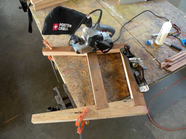 Utilice abrazaderas para alinear todo. Deje que el pegamento seco por unas horas y luego arena todo lo limpie con un papel de 80 grano en una lijadora orbital o de banda. Golpear las juntas con cuidado, ya es donde desajustes resplandor lo peor. Pulirlo con grano 100, entonces 120.