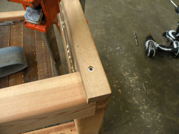 Para traer de vuelta hasta una altura mejor, pongo un pedazo de tramposo en--pegado y atornillado y un casquete, con muescas en los marcos laterales de la sierra. Usted puede terminar sin embargo desea--lo corte al ras con la parte superior de los marcos de la silla o traer para arriba más lejos. Derrota y lije los bordes del asiento y por ergonomía.