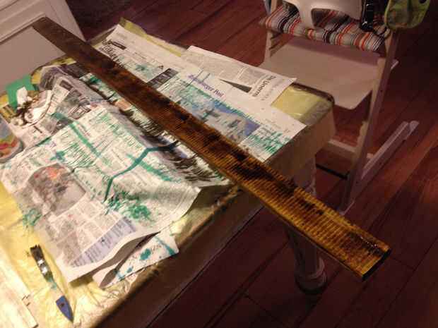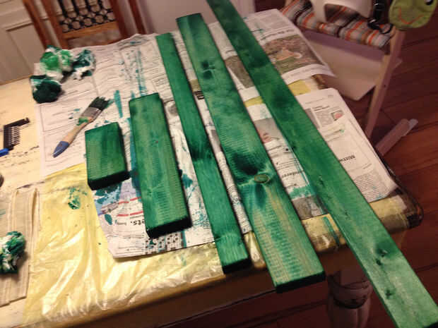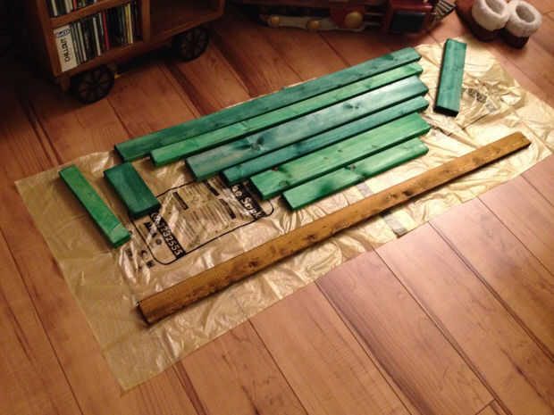 Me decidí a teñir la madera en lugar de pintura - principalmente porque tenía algunas manchas en el garaje y se trata de un proyecto de reciclaje de todos modos...