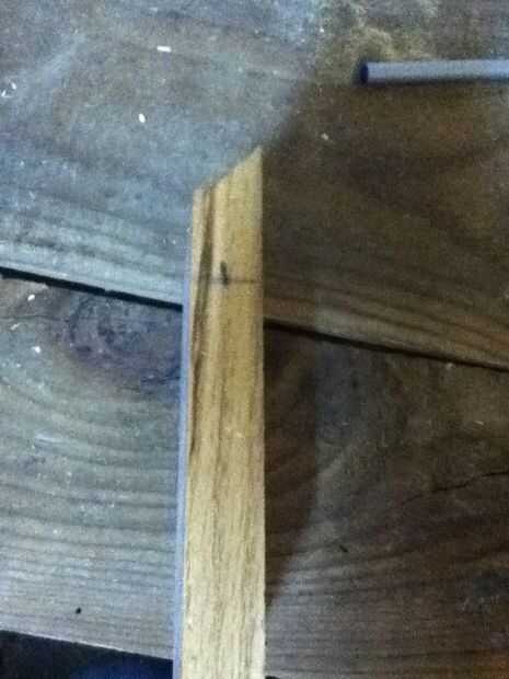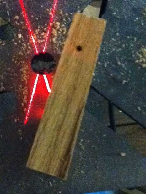 Cuando encuentre un pedazo de madera de desecho que trabajo (alrededor de 3 a 4 pulgadas largo y 1 pulgada de espesor debe funcionar) marcará el centro del lado fino de la madera donde usted quiere el agujero. (Foto 1) luego use el taladro o mano taladro para perforar el orificio (Foto 2) completamente a través de la madera. (He utilizado una broca de 1/8 de pulgada, pero recomiendo usar un 1/4)