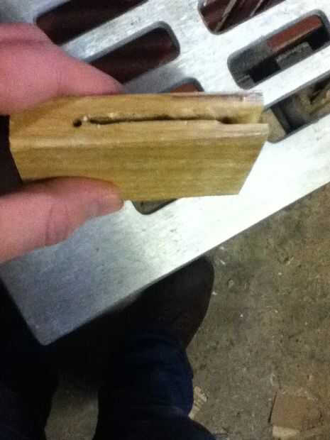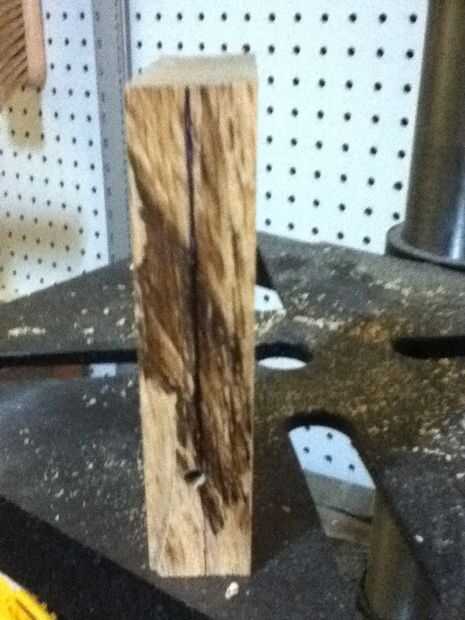 Para este paso se utiliza ya sea una banda o sierra de mesa, estoy usando y recomienda el uso de una sierra de banda, pero es fácil en una mesa vio así. 1 marca una línea desde el centro de su agujero hasta el final de la madera (Foto 1).