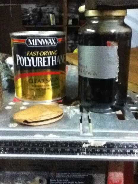 he utilizado un agua mancha nogal base que me hago (tenemos un montón de árboles para proporcionar nueces) entonces añadí dos capas de poliuretano para protegerla de la constante de usan va a obtener.