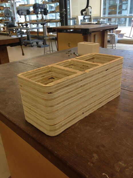 Una vez que tengas todas las 9 piezas corte, es hora de conseguir pegado. Usted será sólo unir 8 de las 9 piezas porque tienes que sacar la parte superior para poder insertar los altavoces y todos los componentes eléctricos. Así que pegue la parte inferior para el el 7 hueco piezas y usar la novena pieza superior para sujetarse a y distribución de presión uniforme sobre todos los bordes. Utilizar el pegamento con moderación porque no quieres goteo dentro o de lo contrario será muy difícil a la arena hacia fuera.