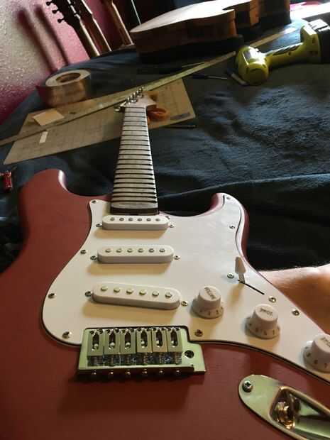 Controlador de camionetas - convertir el movimiento de las cuerdas en una señal eléctrica potenciómetro - resistencia variable para ajustar el volumen y el tono interruptor - selecciona qué combinación de pastillas se utilizan al mismo tiempo condensador - ayuda a estabiliza la corriente y, por supuesto, cables conectan todo.