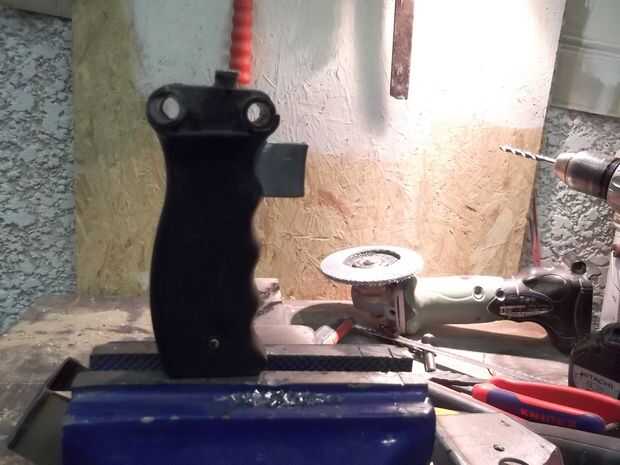 ¿Conoces este tipo de tapedispenser? Sacar el mango! Se hase un gatillo y un pequeño brazo en el lado positivo que guía la cinta. Desmonte, guarde los tornillos de la parte superior y perfore un pequeño agujero en la guía. Ya tiene uno, pero el que te taladra será justo antes de que perforó en el liberación/disparador de la casa. ¿Capito?