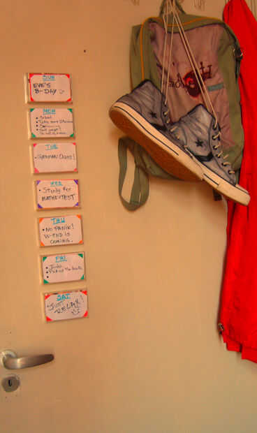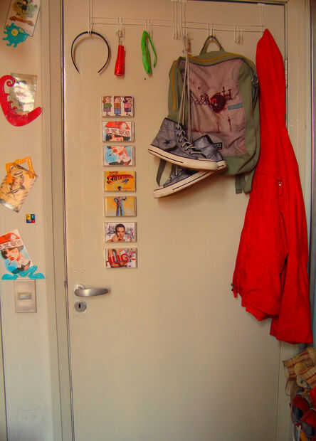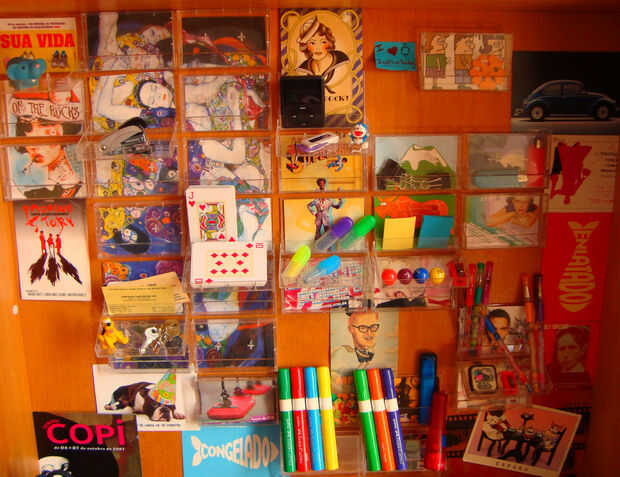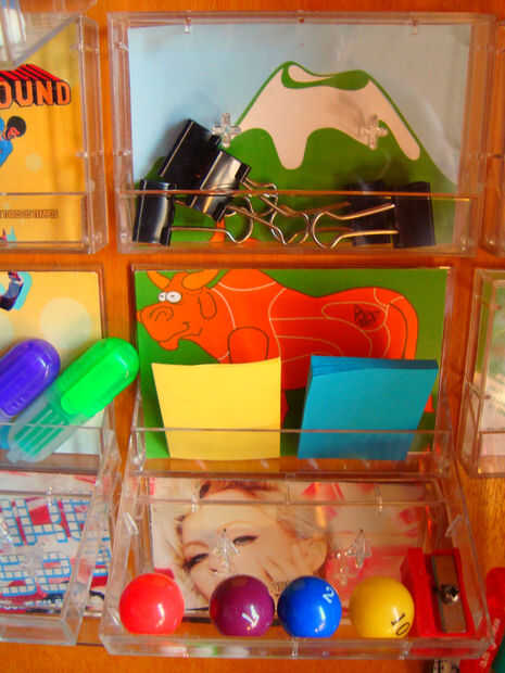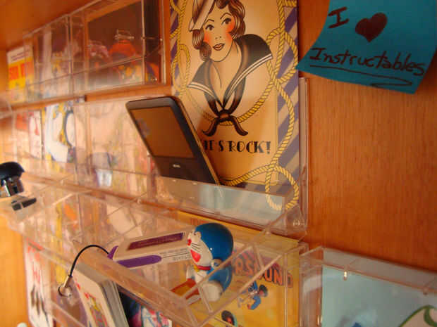 Esta chatarra pequeña pared está hecha de cajas de cinta vieja.
