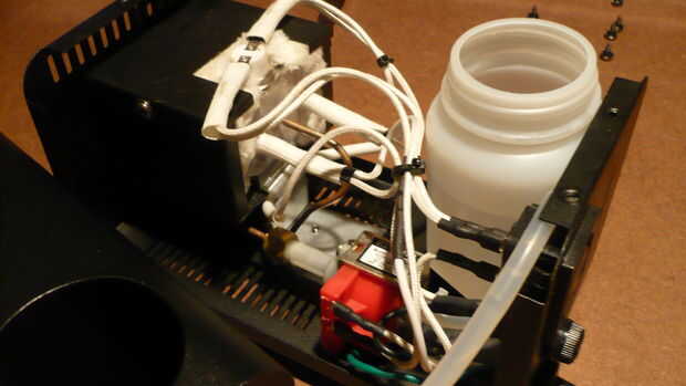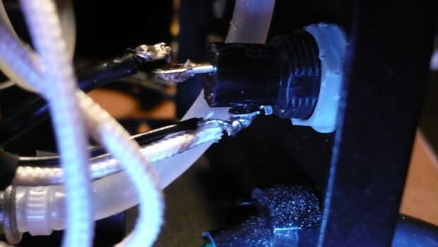 Después de soldar los cables asegúrese de que usted cinta eléctrica o calor encogen los cables expuestos porque 120VAC se va pasando a través de ellos y usted no querría una impactante sorpresa la próxima vez que utilice su máquina de humo.