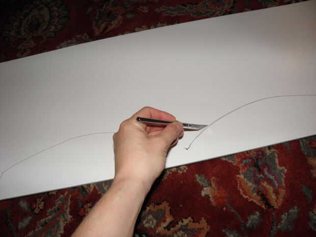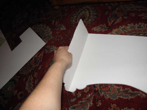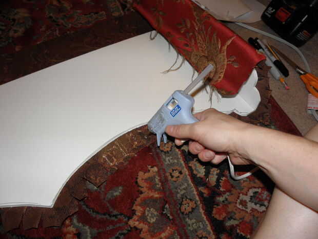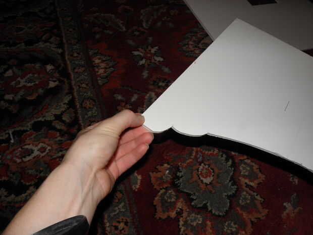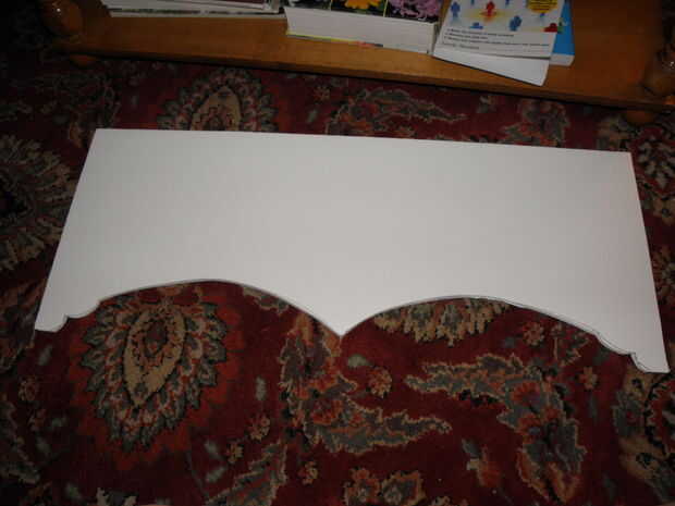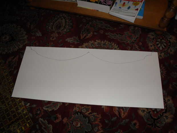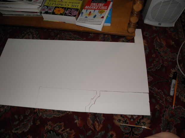 2. esboce su diseño en espuma de. Una vez que tenga las dimensiones deseadas, hacer su patrón en el tablero de base de espuma. Esto podría ser un rectángulo llano ol ' si vas moderno, o se puede hacer un pico de viuda de buscando Botín-lo como lo hice. El detalle más colocar en sus cajas, sin embargo, más difícil será para cubrir elegantemente con su tela.