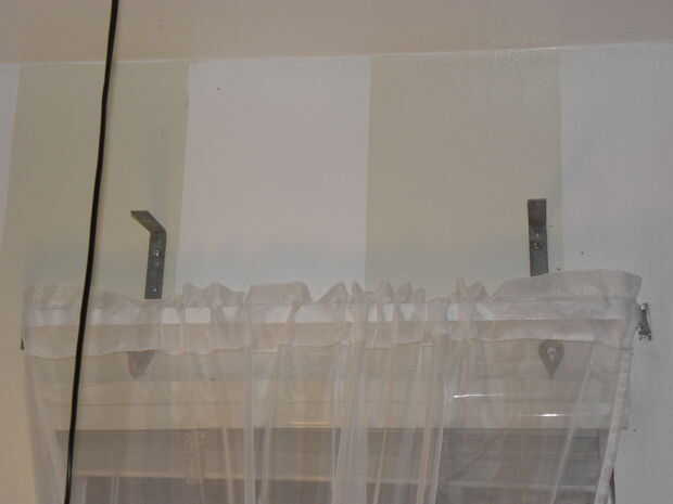 10. colgar em! Ahora, se acaban sus cajas uber-simple, baratos y ligeros. Instale uno de tu "L" soportes sobre una ventana. Sostenga el soporte "L" segundo cerca del extremo opuesto de la ventana y un tablero en el que usa un nivel para medir la exactitud del balance. Puede medir ambos soportes de la altura del techo, pero encuentro esto es menos preciso que el uso de un nivel (casas podrían ser flojo) y por lo general toma más tiempo para hacer bien. Luego, mientras sostiene el soporte en "L" con una mano, desechar el tablero y el nivel y comercio para un tornillo y taladro (o destornillador). Seguir adelante y ese perrito del tornillo en la pared. Ahora, tienes dos "L" los soportes por encima de su ventana para colgar su cuadro de cornisa y es exactamente lo que haces. Porque son tan livianas, no necesita anclar sus soportes en "L" o incluso colocar sus cajas de cornisa desde abajo. Esto significa que simplemente se levante y para quitar el polvo fácil o incluso a cambiar con una caja diferente! Tan versátil, tan fácil.