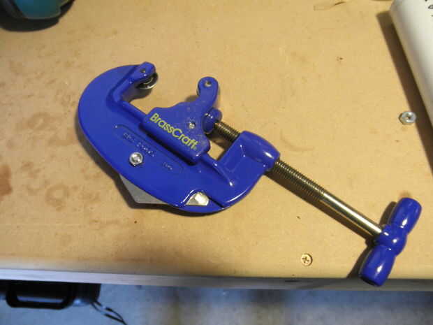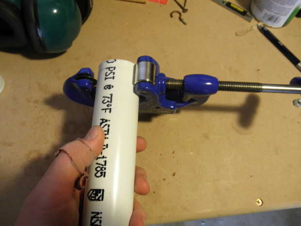 Así que para empezar comienzo cortando un tubo en anillos de 1/2". Estoy usando un cortador de pipa aquí. Estos pueden ser tenidos en internet o en tienda de hardware de 10-30 dólares dependiendo de la garganta. La garganta siendo cómo es grande una tubería de diámetro caben en el cortador. Asegúrese de comprar un cortador que aceptará el tubo! Hay una gran cantidad de cortadoras de mano que van sólo hasta 7/8" o 1".