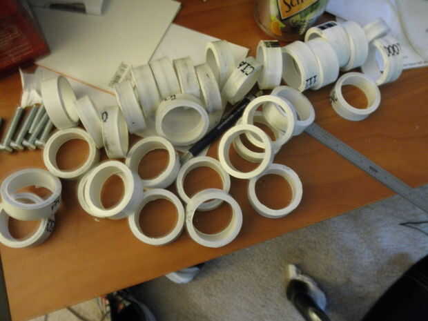 En general para los dos tamaños de tubos probé (1-1/4 y 1-1/2") la proporción es 3:1 y 4:1 respectivamente. Lo que significa para cada pulgada de la tubería utilizada, se crearán cuatro pulgadas de cadena. ¡ Emocionante!