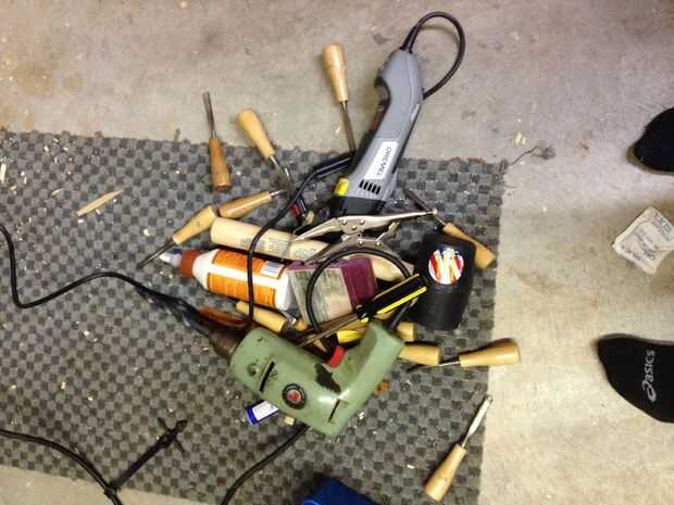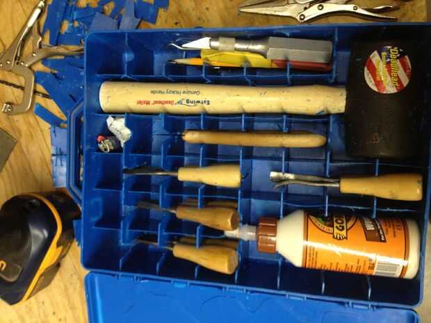 Este caso es no el más grande lo que es fácil de transportar y almacenar, pero también restringe la cantidad de herramientas que desea tener en su lista. Lo primero es tomar el montón de herramientas y organizar lo de las necesidades y deseos, considere lo que es necesario y qué no. Luego utilizando las herramientas que ha elegido comenzar a diseño donde vas a colocarlas. Encontré que apilando pude traer a casi todos mis cinceles y cuchillos. Elige el diseño que es más conveniente, con los elementos más pesados más grandes en la parte inferior y los más pequeños en la parte superior.