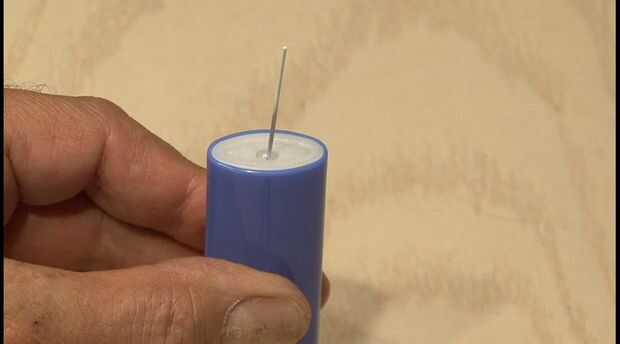 3. Voltee el encendedor y llevarlo a un lugar seguro. Poner en gafas nunca duele. Meter un objeto pequeño o un clip en el agujero y debe en contacto con la válvula de metal en la base del alumbrador. Golpee suavemente con algo para liberarlo el butano. Puede que deba volcarse para asegurarse de que el butano se ha ido. Debe oír algo pequeño golpeteo dentro. Es la válvula.