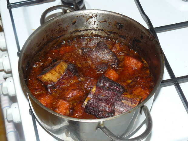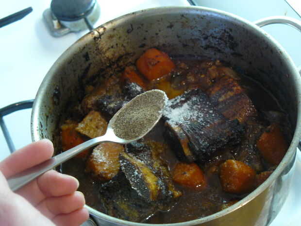 Ahora para el condimento final: ¿por qué no han añadido sal, pimienta y ajo antes de (no lo has hecho, derecha?) Porque como el líquido se evapora, aumentaría el concetration de sal y lo que era perfectamente sazonada Goulash ahora sería oversalted desiguales. Lo mismo con el pimiento. El ajo es otra historia: como el ajo picado se calienta, libera (pierde) perforar al ajo, así después de 2-4 horas de calentamiento en el guiso, que sería sólo del fantasma de su anterior yo. Así que quieres hornear enteras, pero picar y añadir a él apenas para los últimos minutos distribuir el sabor al ajo, pero no perder.