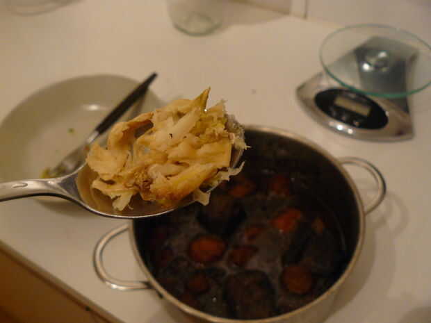Así que ahora que vas y el ajo picado/puré, la salsa de soja y pescado (opcional), sal y pimienta, revolver bien y poner en el horno durante 10 minutos finales (aunque será difícil, una vez que tu cerebro registra el olor seducir a Ángel de la olla.