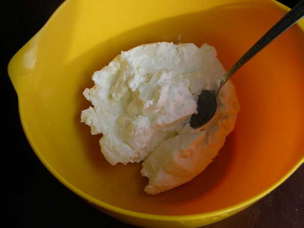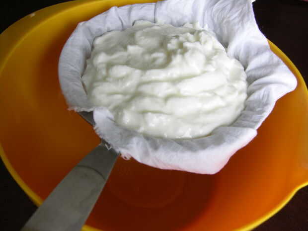 consistencia de queso suave. (El líquido es el suero y puede usarse en lugar de agua en pan)