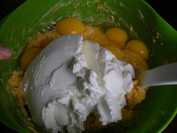 Añadir el yogur colado y huevos y mezcla hasta que quede suave. He utilizado la licuadora stick.