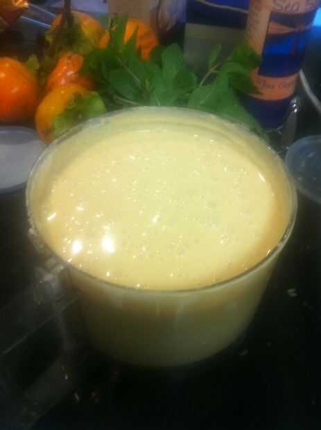 Combinar el caquis, queso crema, 1 1/4 taza de azúcar, 3/4 taza de crema agria, canela y jengibre en un procesador de alimentos. No dude en añadir algunas de sus otras especias favoritas.