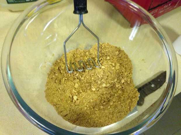 Abra el paquete de galletas y vierta en un recipiente. Usted puede utilizar un procesador de alimentos para esto, realmente no me gusta demasiado máquinas porque me gusta tener manos con mi cocina así que yo sólo uso un tazón de fuente y mis manos.