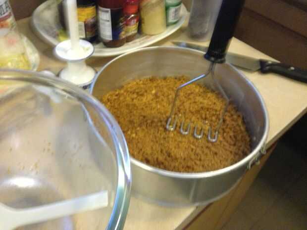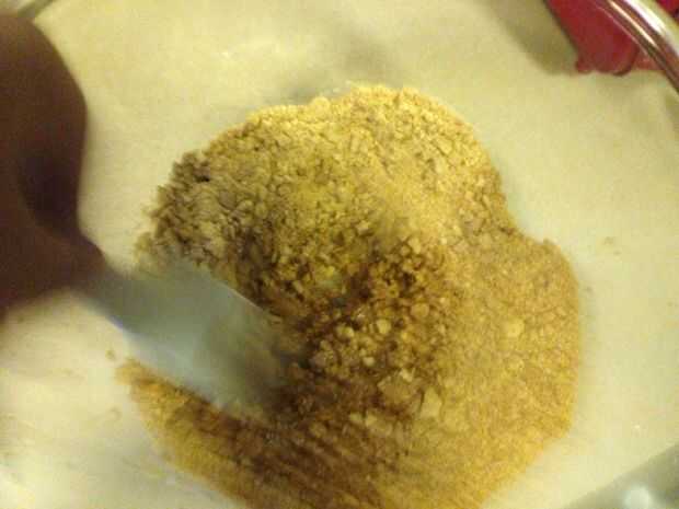 Luego Vierta la mantequilla de la mantequilla galleta y mezclarlas bien y uniformemente. Un buen truco es asegurarse de que la galleta mantequilla vuelta más oscuro para saber que la mantequilla mezclar bien.