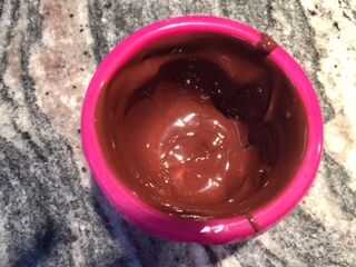 4. Coloque la taza boca abajo sobre un papel de pergamino para cualquier exceso de chocolate a agotarse.