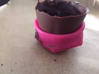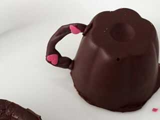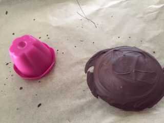 7. con cuidado retire la taza del chocolate de la forma pelado abajo de los bordes de la Copa de silicona.
