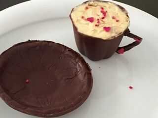 Disfrutar de una taza fría de taza chocolate cheesecake de fresa!!!!!!